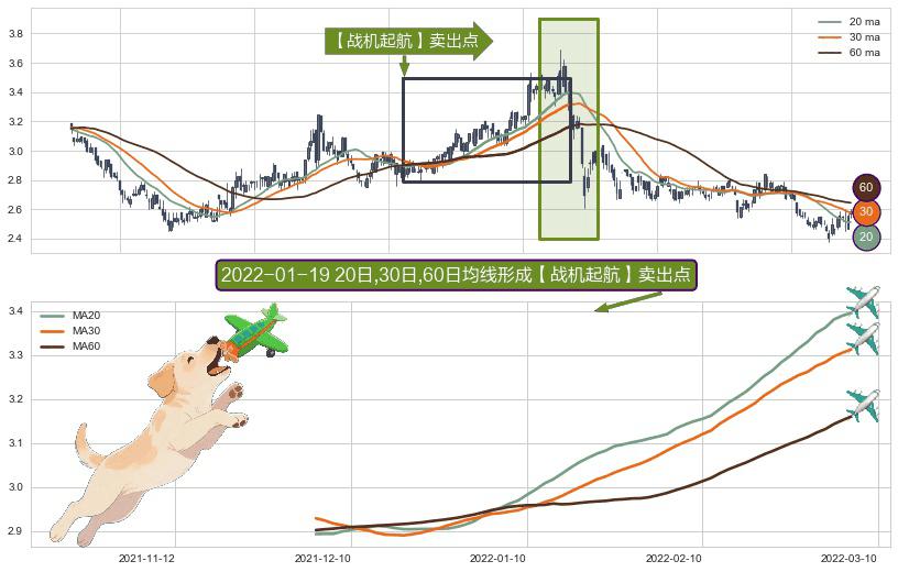 形态多维评估: ⚀ 2021-12-06日-2022-03-07日显现 20日-30日-60日均线 【战机起航】卖出点 看空信号,后市看跌,卖出