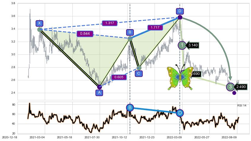 ➣ 已完成【蝴蝶】形态起点X: 2021-02-18, 终点D: 2022-03-03, 共257交易日
