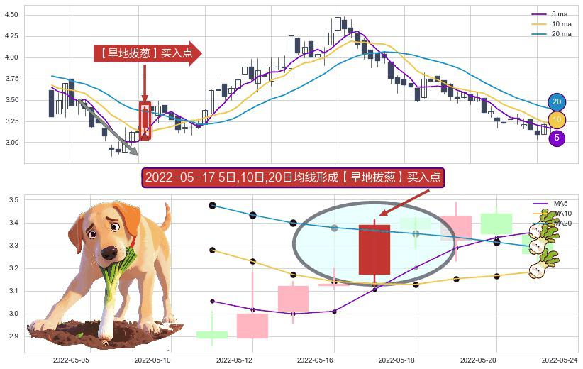 ⚀ 2022-05-17日显现 5日-10日-20日均线 【旱地拔葱】买入点 看多信号,后市看涨,买入