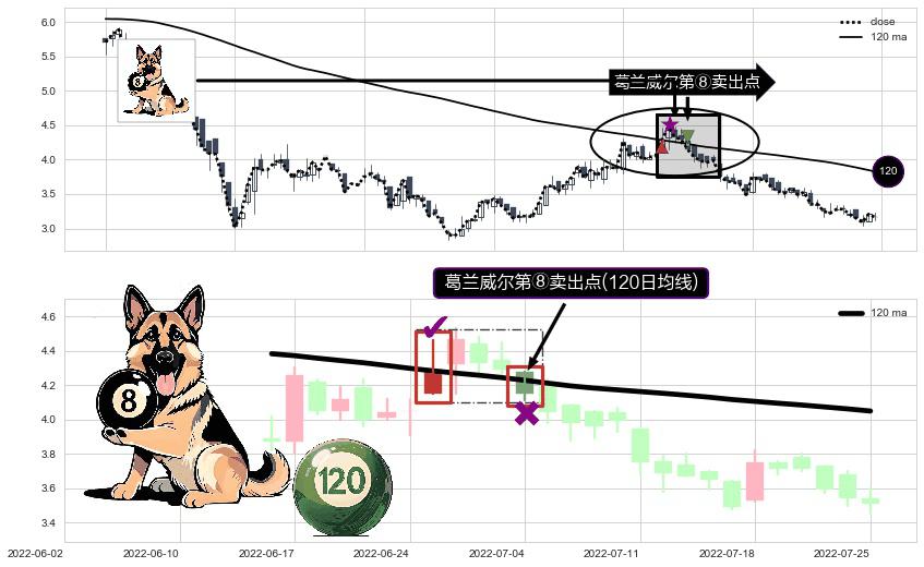 ⚀ 2022-07-04-日显现 葛兰威尔均线 120日均线 第⑧卖出点 下降趋势的中继信号,后市看跌,卖出信号
