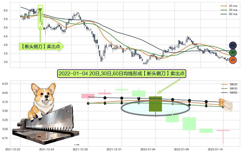 ⚀ 2022-01-04日显现 20日-30日-60日均线 【断头铡刀】卖出点 看空信号,后市看跌,卖出