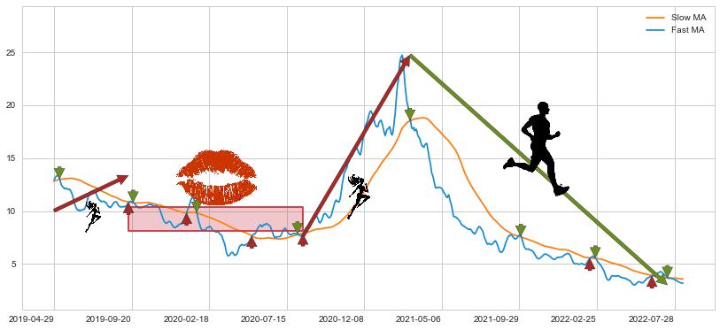 2021-03-05至2022-07-15 慢线与快线呈空头排列, 慢线与快线接触少,无缠绕