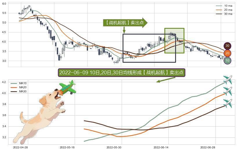 ⚀ 2022-05-18日-2022-06-30日显现 10日-20日-30日均线 【战机起航】卖出点 看空信号,后市看跌,卖出