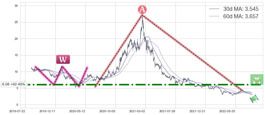 ♘ 阻力价格位6.08,可信任强度89.79%,距离最后交易2022-08-12形成的收盘价格3.160相差 +92.40%