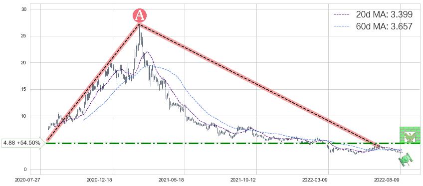 ♘ 阻力价格位4.88,可信任强度67.07%,距离最后交易2022-08-12形成的收盘价格3.160相差 +54.50%