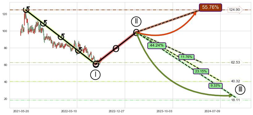 ➣ 大趋势循环浪继续向下概率44.24%