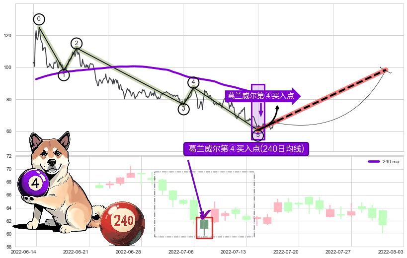 ➢ 收盘价(2022-07-26: 62.85 )→再次回踩→第一根k线高点(2022-07-15: 63.00 )