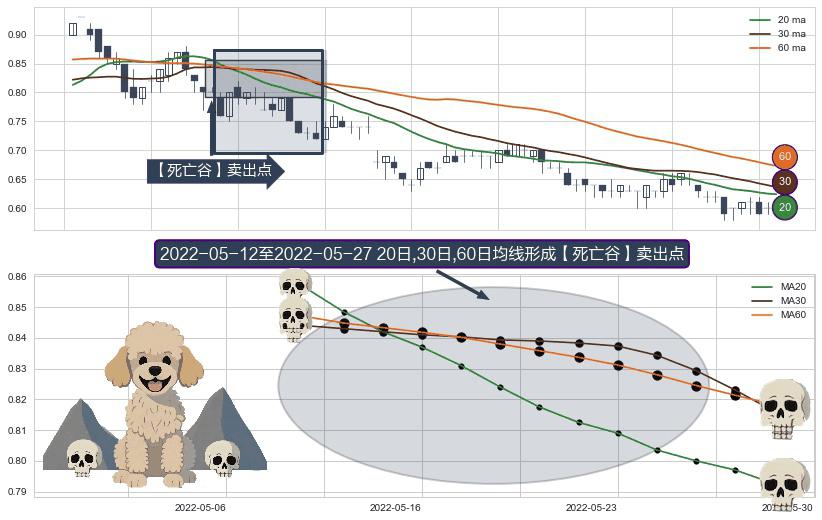 形态多维评估: ⚀ 2022-05-13-日至2022-05-27-日显现 20日-30日-60日均线 【死亡谷】卖出点 看空信号,后市看跌,卖出