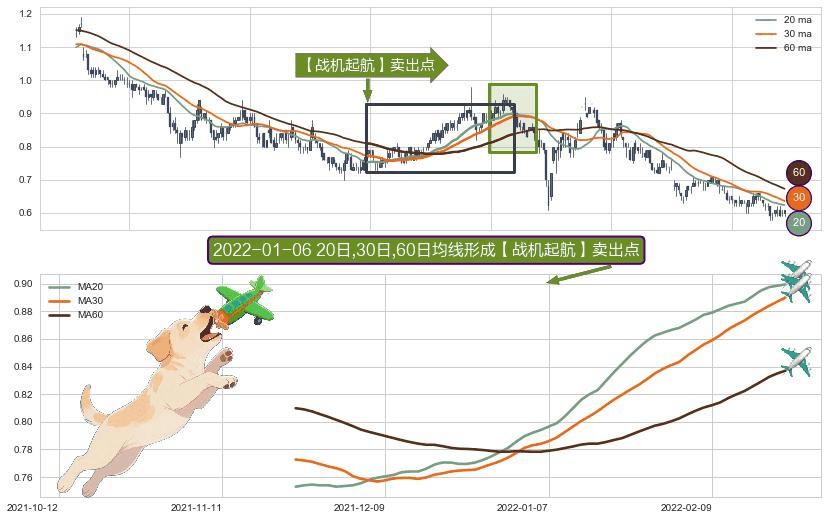 形态多维评估: ⚀ 2021-11-24日-2022-02-22日显现 20日-30日-60日均线 【战机起航】卖出点 看空信号,后市看跌,卖出