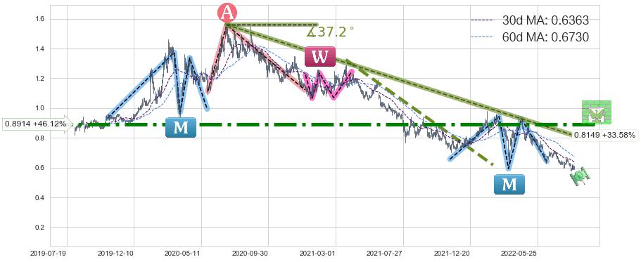 ➢ 【已达成】最小【整理】第一目标价格→(2021-11-08: 0.7396 ), 后续继续【整理】下跌动力依然存在,下跌空间适中