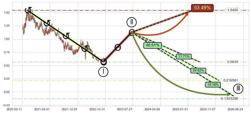➣ 大趋势循环浪继续向下概率46.51%