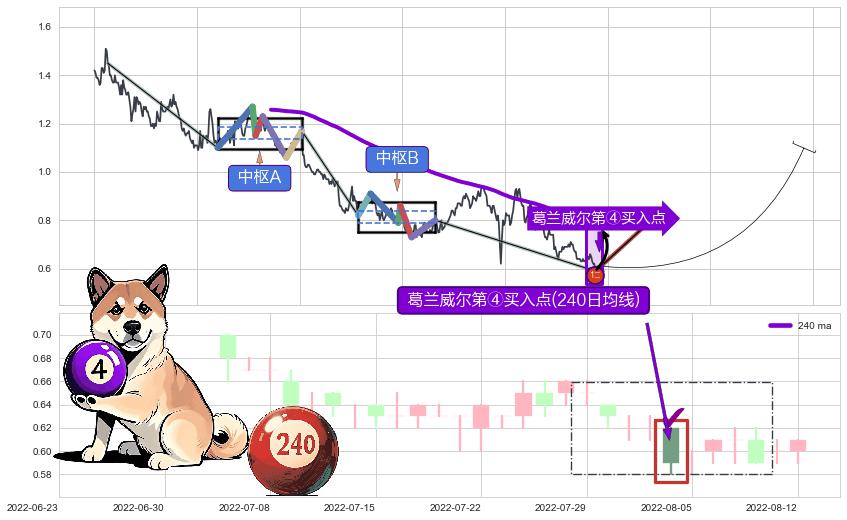 ➢ 智能识别已发生事件:缠论第一类买点【买❶】→(2022-08-04: 0.5900 )
