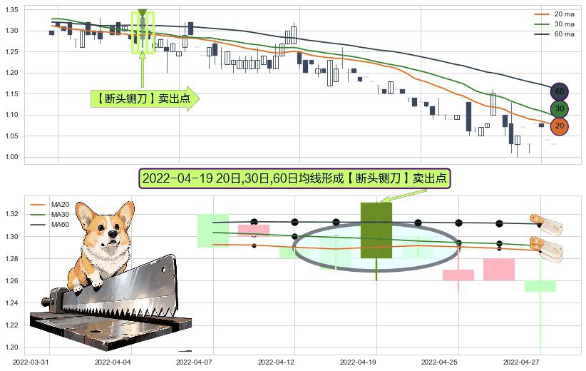 形态多维评估: ⚀ 2022-04-19日显现 20日-30日-60日均线 【断头铡刀】卖出点 看空信号,后市看跌,卖出