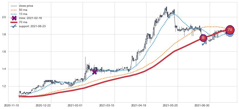 上涨趋势2020-11-10-2021-07-21,均线70确认关键支撑1处