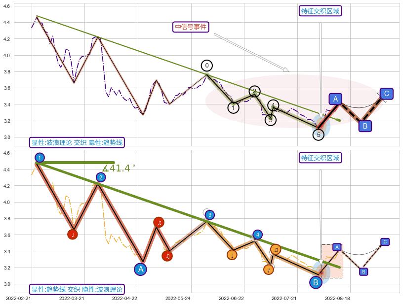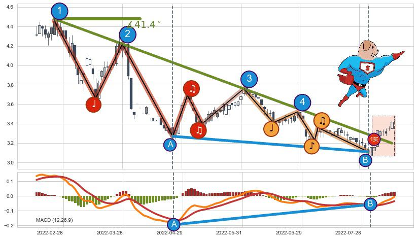 ⚔️ 2022-02-23-2022-08-11下跌趋势存在反转上涨[机会],其原下跌趋势的阻力位(3.199)已被突破[强支撑信号],原下跌趋势角度: 41.4˚