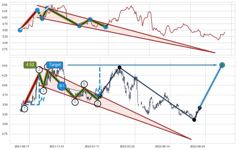 ➣ AI预测: 假定反转启动后, 第❶目标位置(2023-02-01, 3.658)