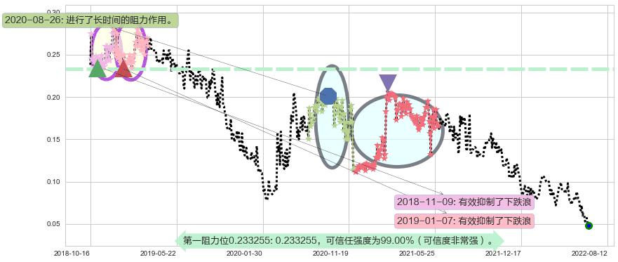♘ 阻力价格位0.233255,可信任强度99.00%,距离最后交易2022-08-12形成的收盘价格0.0480000相差 +385.95%