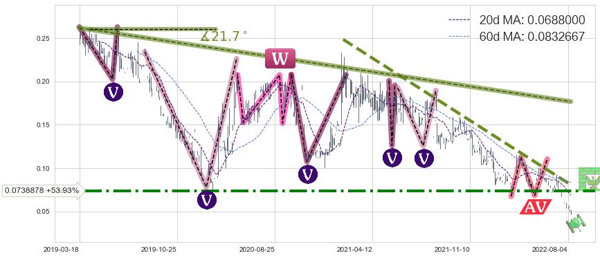 ➣ 【已达成】最小【整理】第一目标价格→(2022-08-12: 0.0483103 ), 后续继续【整理】下跌动力依然存在,下跌空间适中