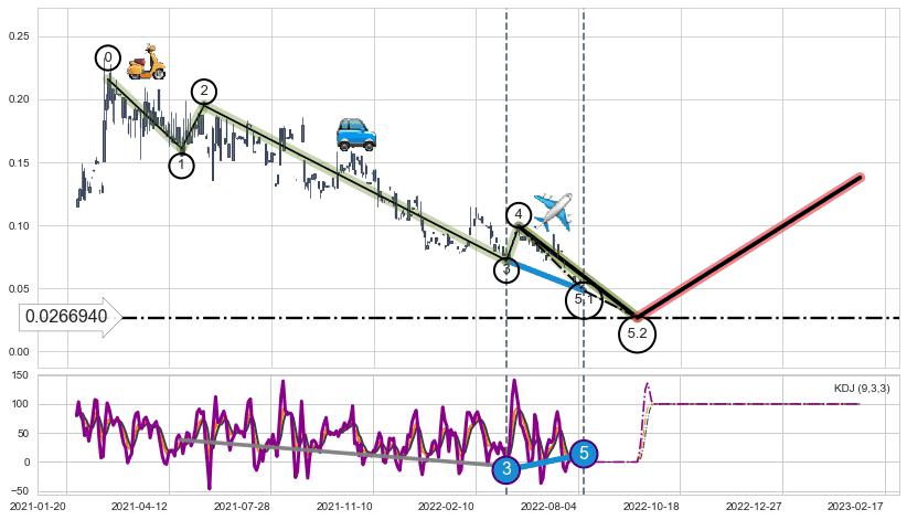 ➣ 5.1: 预测当前第5浪位置(2022-08-12, 0.0480000),仍然有下跌空间