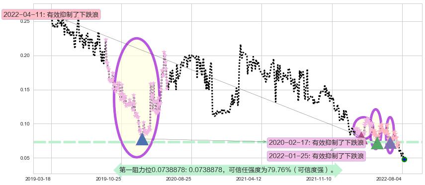 ♘ 阻力价格位0.0738878,可信任强度79.76%,距离最后交易2022-08-12形成的收盘价格0.0480000相差 +53.93%