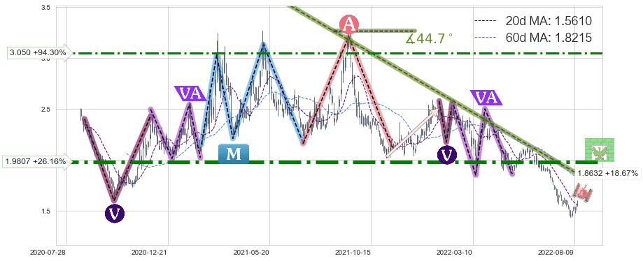 ➢ AI预测: 假定反转如期而至,第❶价格目标位置(2022-10-25, 2.130)
