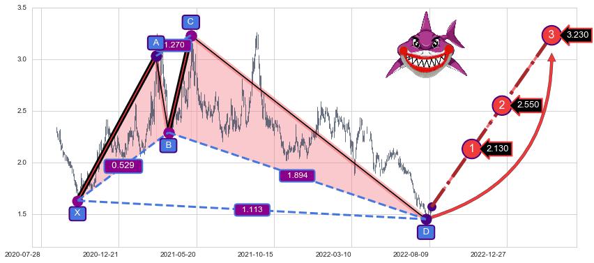 ➣ 已完成【鲨鱼】形态起点X: 2020-10-05, 终点D: 2022-08-03, 共450交易日