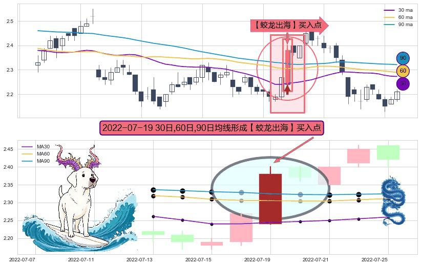 ⚀ 2022-07-19日显现 30日-60日-90日均线 【蛟龙出海】买入点 看多信号,后市看涨,买入