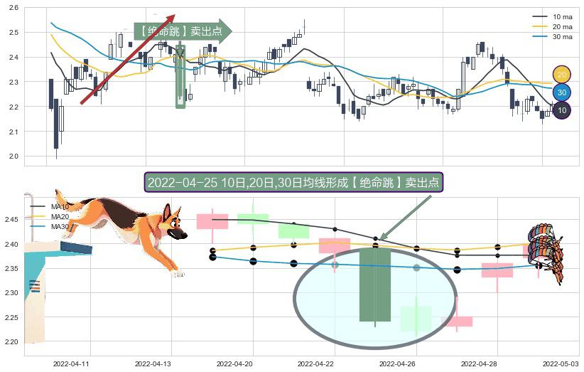 ⚀ 2022-04-25日显现 10日-20日-30日均线 【绝命跳】卖出点 看空信号,后市看跌,卖出