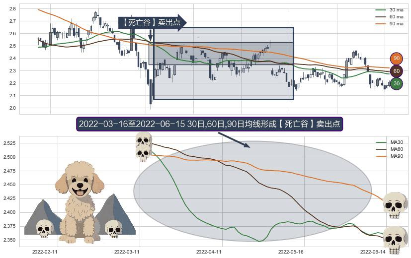 ⚀ 2022-03-17-日至2022-06-15-日显现 30日-60日-90日均线 【死亡谷】卖出点 看空信号,后市看跌,卖出