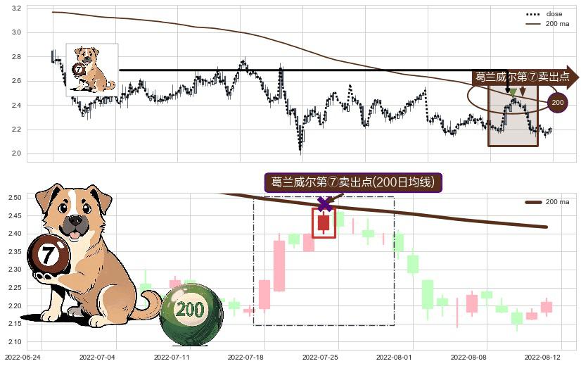 ⚀ 2022-07-22-日显现 葛兰威尔均线 200日均线 第⑦卖出点 下降趋势的中继信号,后市看跌,卖出信号