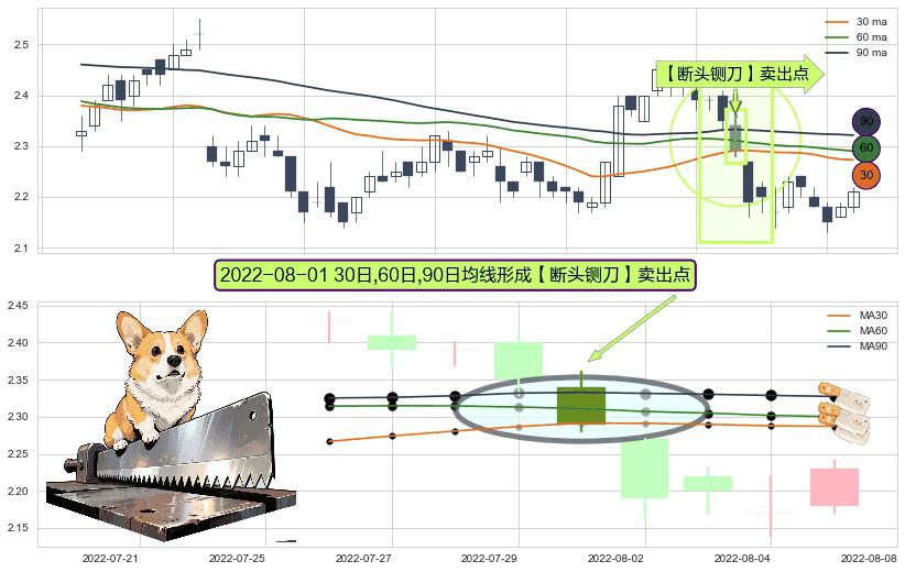 ⚀ 2022-08-01日显现 30日-60日-90日均线 【断头铡刀】卖出点 看空信号,后市看跌,卖出