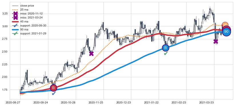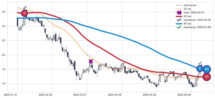 ⚀ 中期均线MA60下穿长期均线MA90形成的交叉是标准 死亡交叉