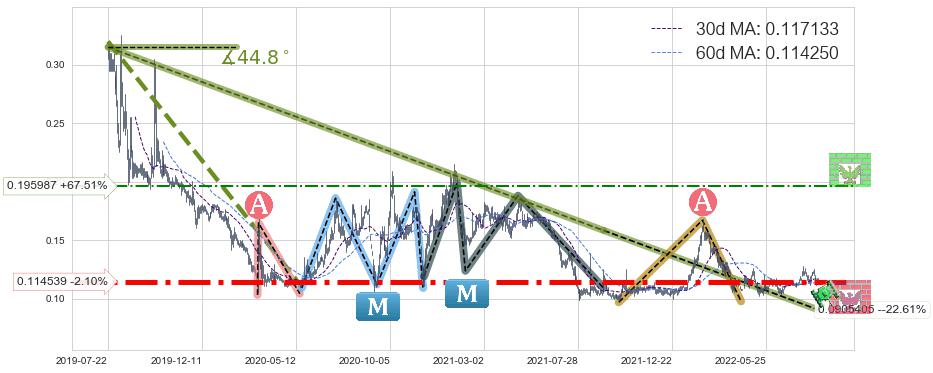 ♘ 阻力价格位0.195987,可信任强度54.96%,距离最后交易2022-08-12形成的收盘价格0.117000相差 +67.51%