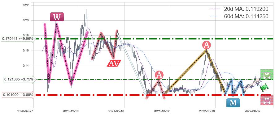 ♘ 阻力价格位0.175448,可信任强度81.47%,距离最后交易2022-08-12形成的收盘价格0.117000相差 +49.96%