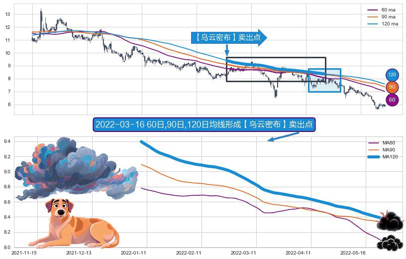 形态多维评估: ⚀ 2022-01-07日-2022-05-25日显现 60日-90日-120日均线 【乌云密布】卖出点 看空信号,后市看跌,卖出