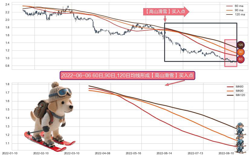 ⚀ 2022-03-18日-2022-08-12日显现 60日-90日-120日均线 【高山滑雪】买入点 看多信号,后市看涨,买入