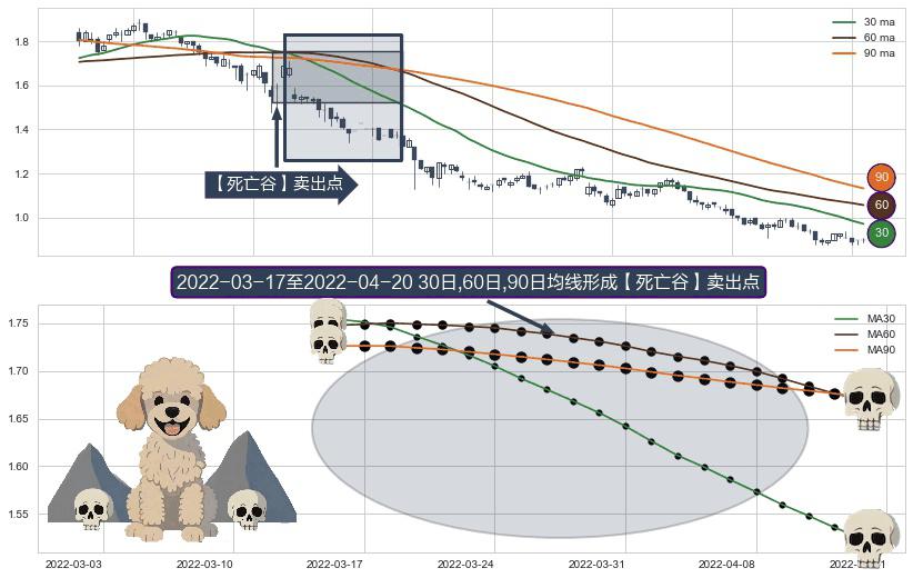 ⚀ 2022-03-18-日至2022-04-20-日显现 30日-60日-90日均线 【死亡谷】卖出点 看空信号,后市看跌,卖出