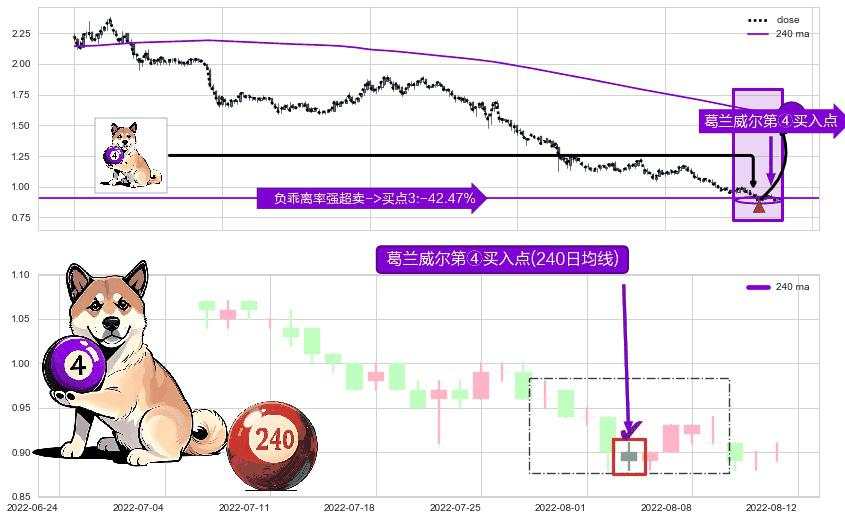 ⚀ 2022-08-03-日显现 葛兰威尔均线 240日均线 第④买入点 下降趋势均值回复的短线反弹信号,后市看涨,买进信号