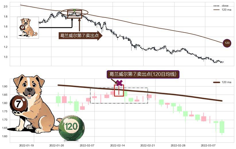 ⚀ 2022-02-11-日显现 葛兰威尔均线 120日均线 第⑦卖出点 下降趋势的中继信号,后市看跌,卖出信号