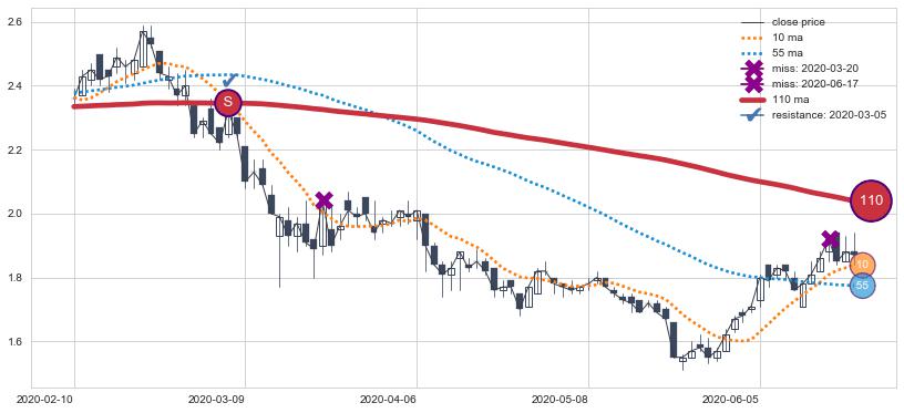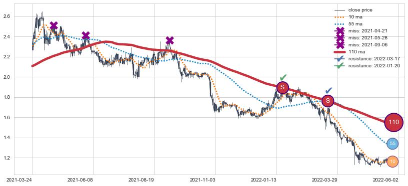 ⚂ 2022-01-12-日均线向上突破,2022-02-25-日重新下穿均线破位,均线阻力再次生效