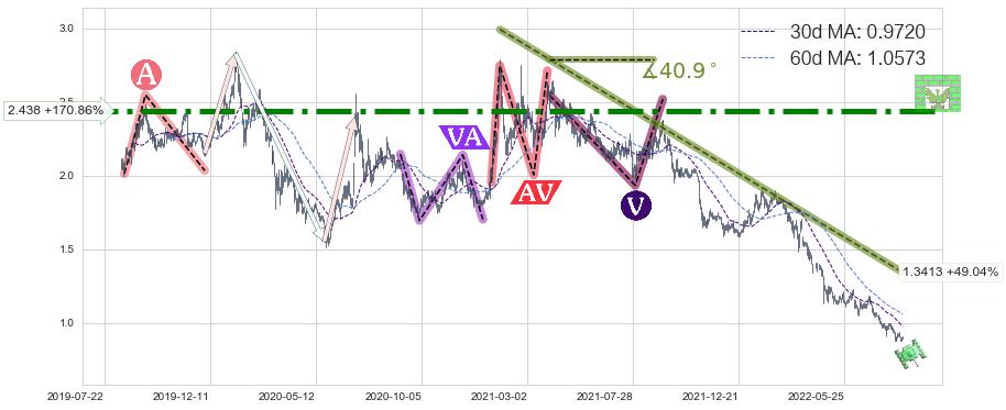 ♘ 阻力价格位2.438,可信任强度99.19%,距离最后交易2022-08-12形成的收盘价格0.9000相差 +170.86%