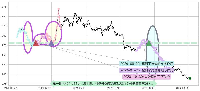 ♘ 阻力价格位1.8118,可信任强度93.62%,距离最后交易2022-08-12形成的收盘价格0.9000相差 +101.31%