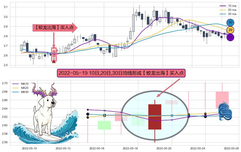 ⚀ 2022-05-19日显现 10日-20日-30日均线 【蛟龙出海】买入点 看多信号,后市看涨,买入