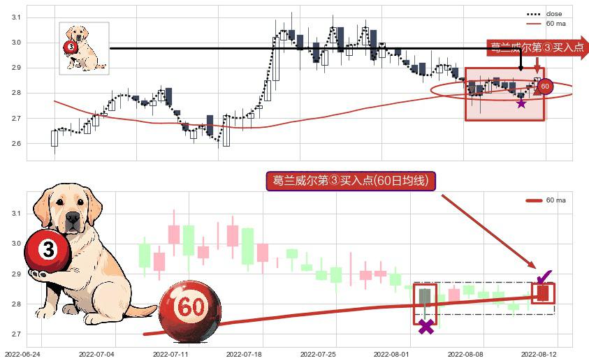 ⚀ 2022-08-12-日显现 葛兰威尔均线 60日均线 第③买入点 上升趋势的中继信号,后市看涨,买进信号