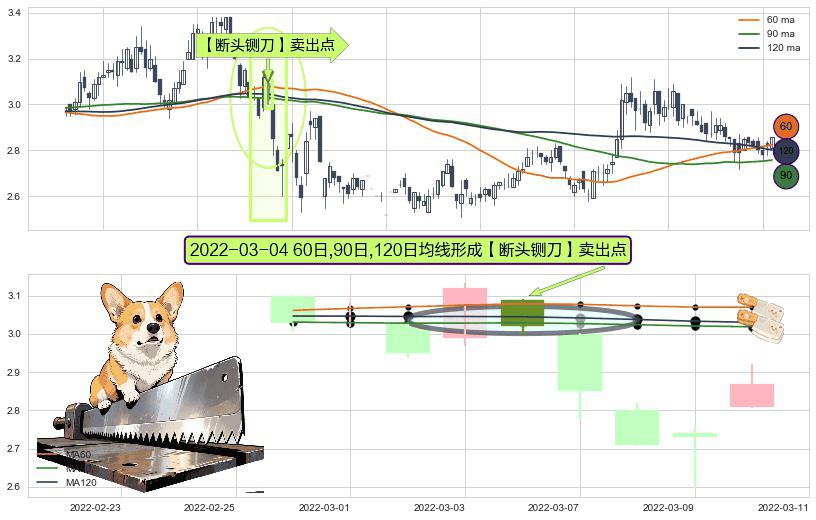 ⚀ 2022-03-04日显现 60日-90日-120日均线 【断头铡刀】卖出点 看空信号,后市看跌,卖出