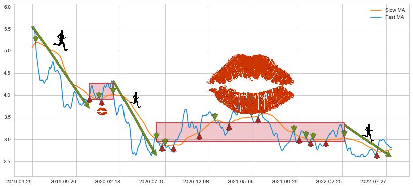 2022-03-04至2022-08-12 慢线与快线呈空头排列, 慢线与快线接触少,无缠绕