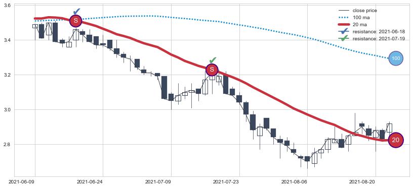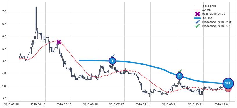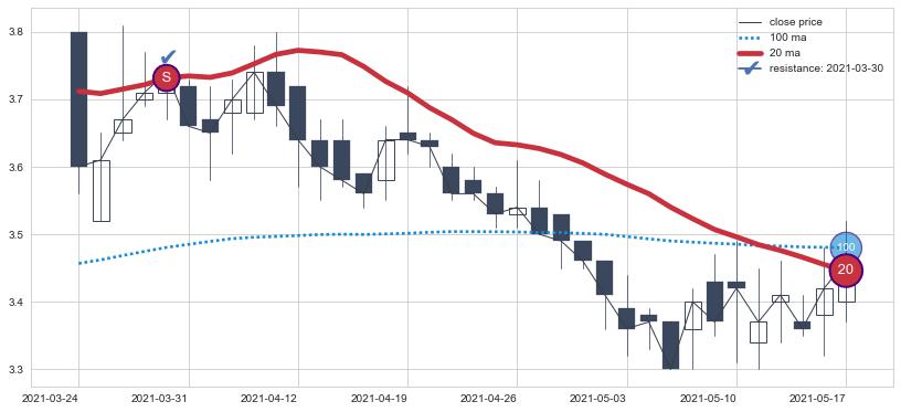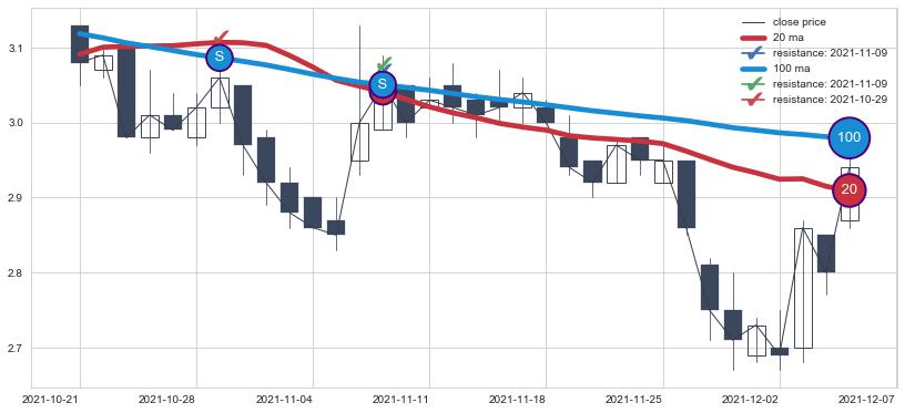 ⚁ MA10和MA20走势平行,且始终保持在短距离内,MA30始终在短中期均线上方,与短中期均线保持一定的距离,微微下行
