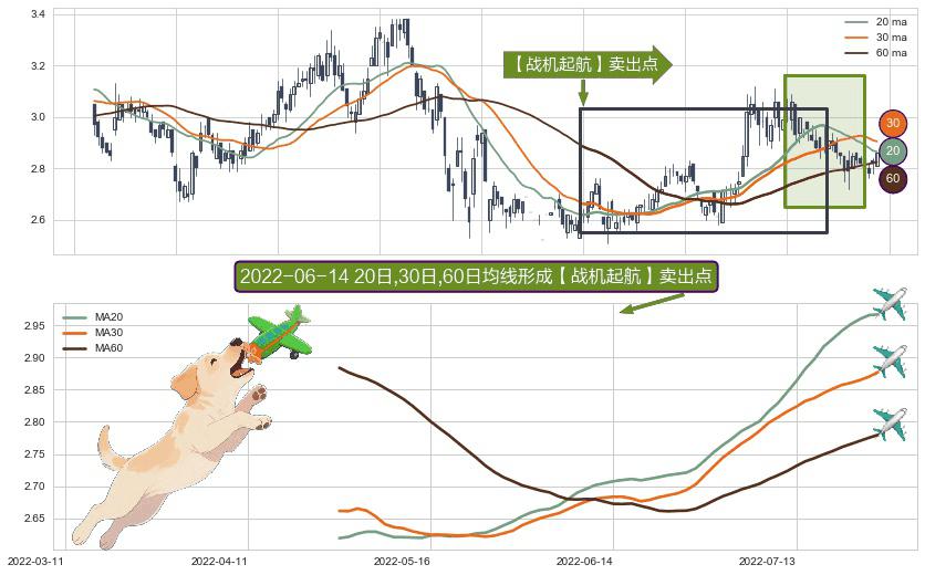 ⚀ 2022-04-28日-2022-07-26日显现 20日-30日-60日均线 【战机起航】卖出点 看空信号,后市看跌,卖出