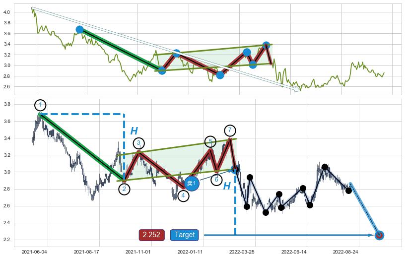 ➣ D点拟合预测价格3.740,距离最后交易收盘价格2.860相差 +30.77%