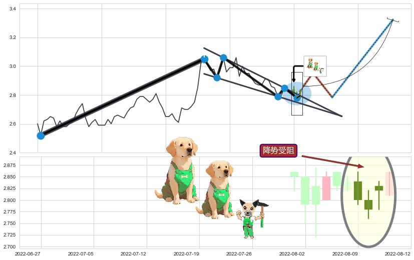 ➢ 【买1】: 激进型 买点 →(2022-08-11: 2.795 )形成突破降🚩楔型【整理】形态